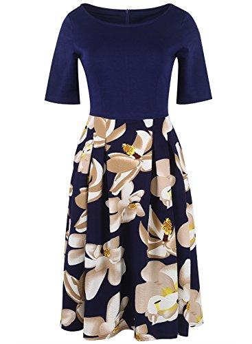 Ladies' Vintage Patchwork Pockets Puffy Swing Casual Party Dress O-Neck,Ball Gown,Fit and Flare.This dress have pockets in side.